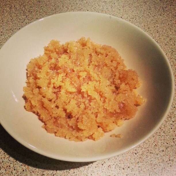 2. In a seperate pan melt the butter and the add Lapsi. Cook till its pinky gold and you can smell it.
