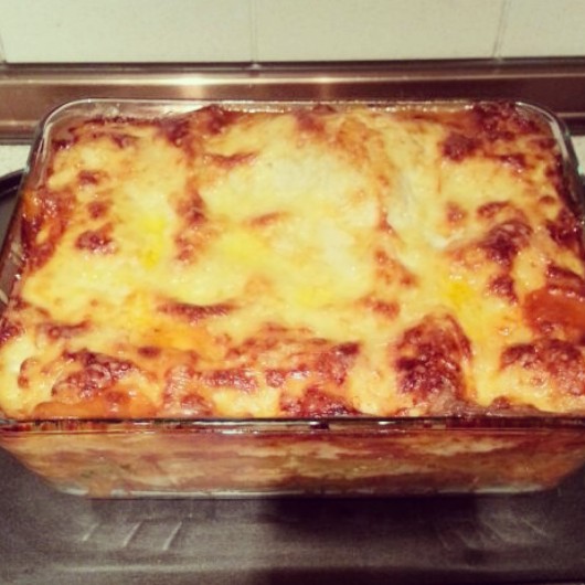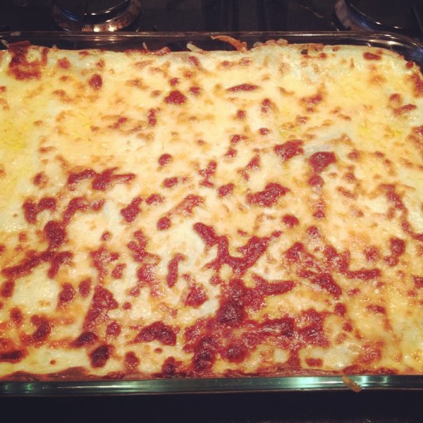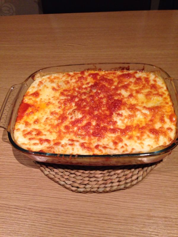 5. Make a white sauce and layer the lasagna in a dish with the vegetable mixture.