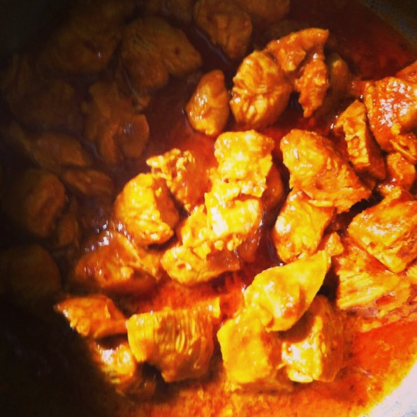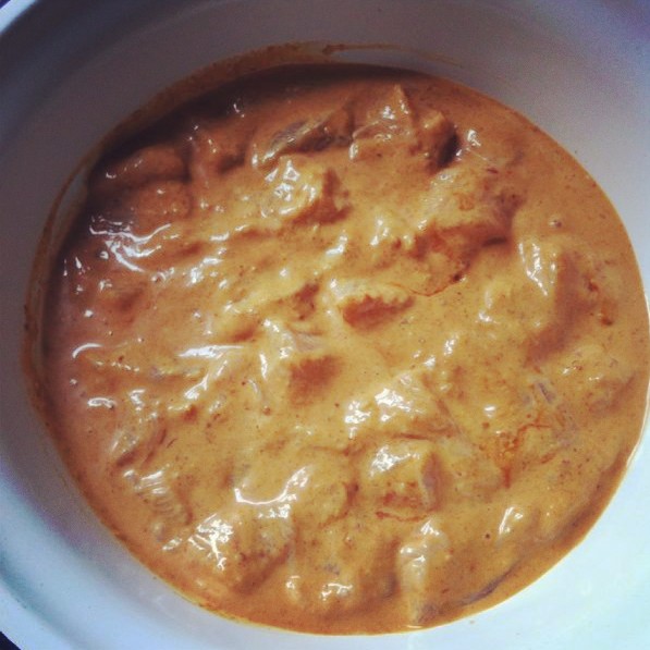 3. Boil all the sauce ingredients and then combine with the chicken. Sprinkle some freshly chopped coriander. Serve with chips or pitta bread/naan/chapattis and salad.