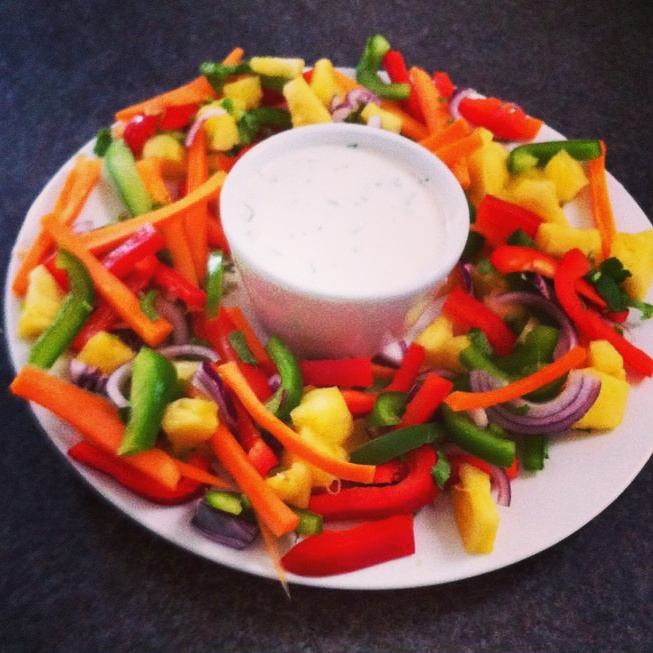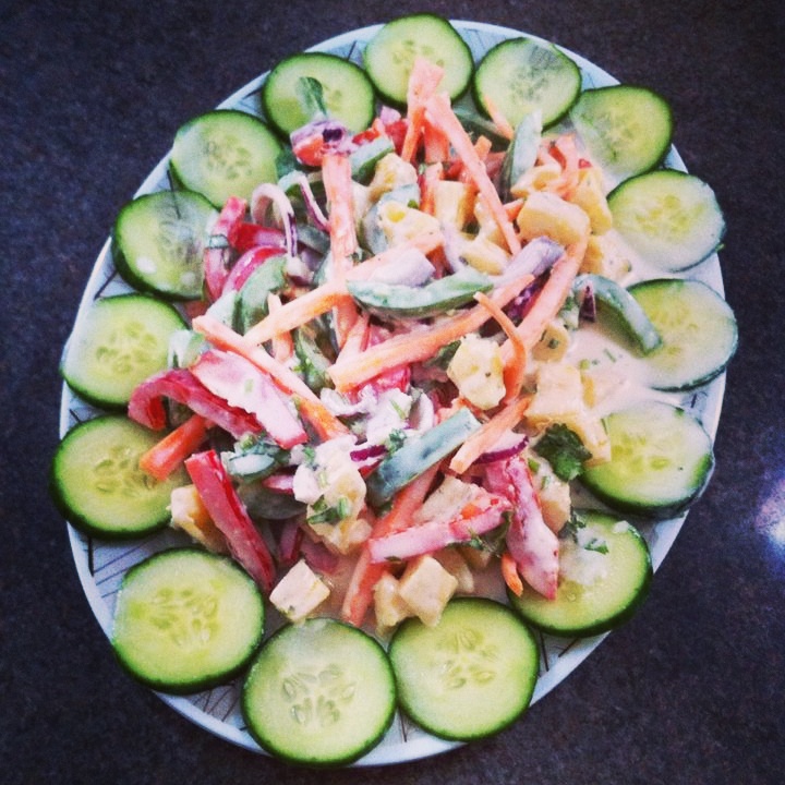 4. Toss in the chopped pineapples, peppers, onions and carrots or serve separately. Finally garnish with fresh coriander.