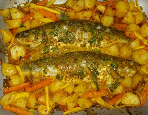 3. Place the veggies around it or roast potatoes and cook on medium heat for forty five mins. Serve with rice, cous cous or rotis.