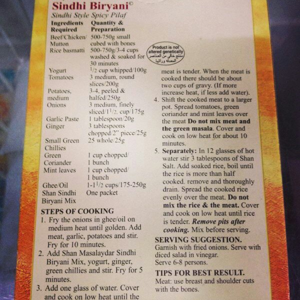 Spice powder: crushed 2 cinnamon sticks; 3 cloves, 3 star anise, 6 cardamon pods, 1 tsp whole cumin, 6 pepper corns OR 2tbsp biryani powder OR whole hard spices