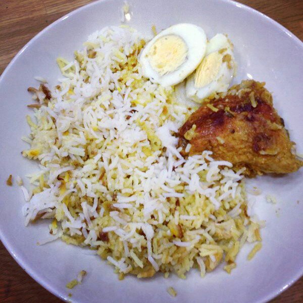 5. Cover and seal lid with something heavy on top. Cook on full heat for five mins. Then reduce heat to low and put a flat crepe/roti pan under the pot and cook for 30 mins. After which switch off cooker but don’t open pan for a further 40 mins.