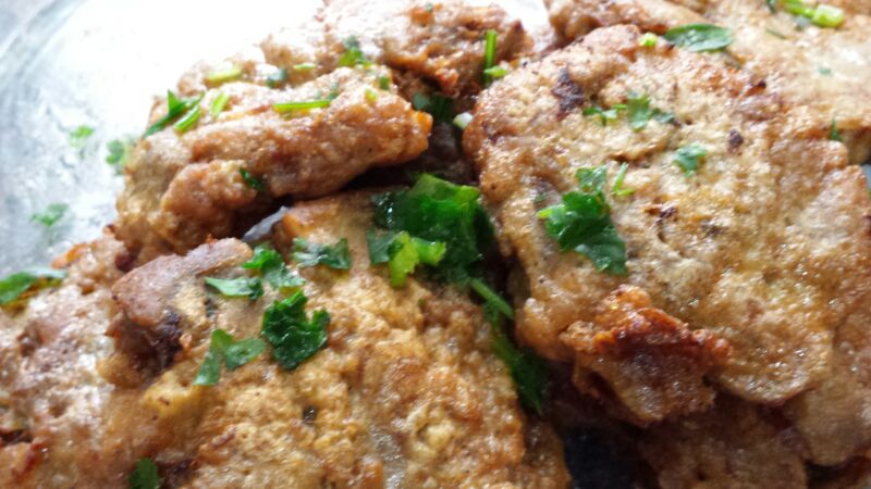 2. Add the other half of the parsley, coriander and peppers to the kebabs. Then pour this on top of the kebabs and gravy.