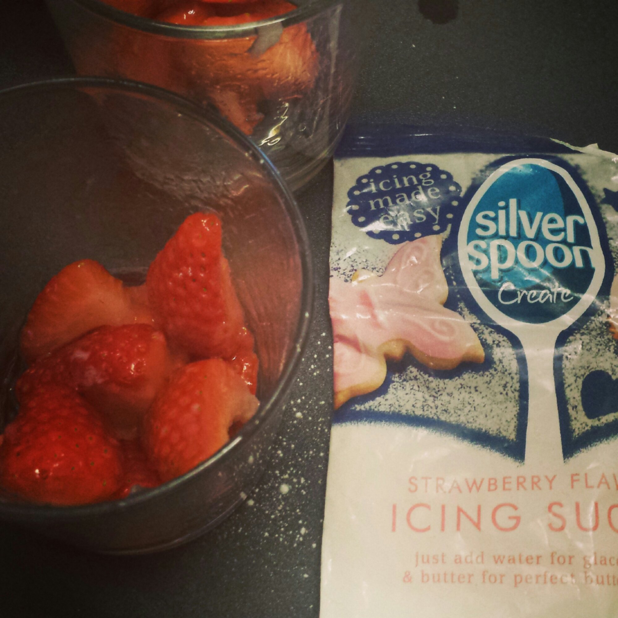 3. Mix some icing sugar into each glass according to the sweetness of the strawberries. Not too sweet as the mousse also has sugar in it.